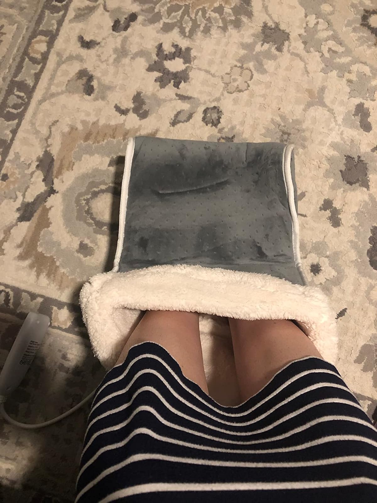 With your CozyPod™ you’ll receive the heated foot-warmer unit itself, a detachable power cord with in-hand controller, and a user manual. The soft fleece/blanket-like inner lining is removable and machine- or hand-washable for easier maintenance.